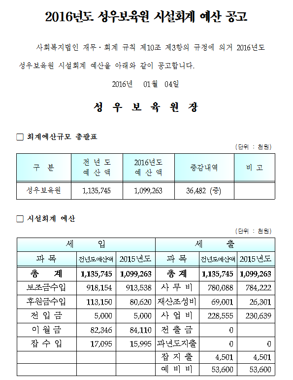 19-03-28 11:24 2016년 시설회계 예산 공고 페이지 정보 작성자 성우보육원 댓글 0건 조회 5,157회 본문 2016년 시설회계 예산 공고 목록 댓글목록 댓글목록 등록된 댓글이 없습니다.