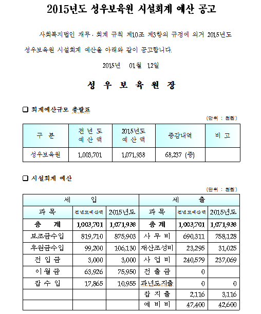 19-03-28 11:04 2015년 시설회계 예산 공고 페이지 정보 작성자 성우보육원 댓글 0건 조회 5,283회 본문 2015년 시설회계 예산 공고 목록 댓글목록 댓글목록 등록된 댓글이 없습니다.