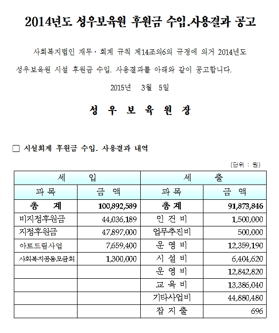 19-03-28 11:05 2014년 후원금 수입 및 지출명세서
