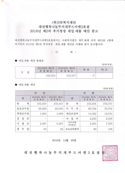 19-03-28 11:47 대전행복나누무지개푸드마켓3호점 2018년 제2차 추가경정 세입.세출 예산공고 페이지 정보 작성자 성우보육원 댓글 0건 조회 5,548회 본문 대전행복나누무지개푸드마켓3호점 2018년 제2차 추가경정 세입.세출 예산공고 목록 댓글목록 댓글목록 등록된 댓글이 없습니다.