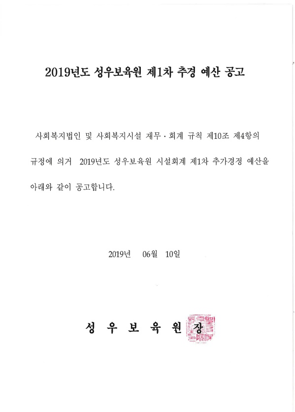 19-06-10 16:54 (공고)2019년도 제1차 추경 예산 페이지 정보 작성자 성우보육원 댓글 0건 조회 5,867회 본문 2019년도 제 1차 추경예산 공고입니다. 목록 댓글목록 댓글목록 등록된 댓글이 없습니다.