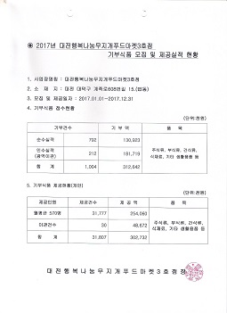 19-03-28 11:43 대전행복나눔무지개푸드마켓3호점 2017년 기부식품 모집 및 제공실적 공고 페이지 정보 작성자 성우보육원 댓글 0건 조회 5,197회 본문 대전행복나눔무지개푸드마켓3호점 2017년 기부식품 모집 및 제공실적 공고 목록 댓글목록 댓글목록 등록된 댓글이 없습니다.