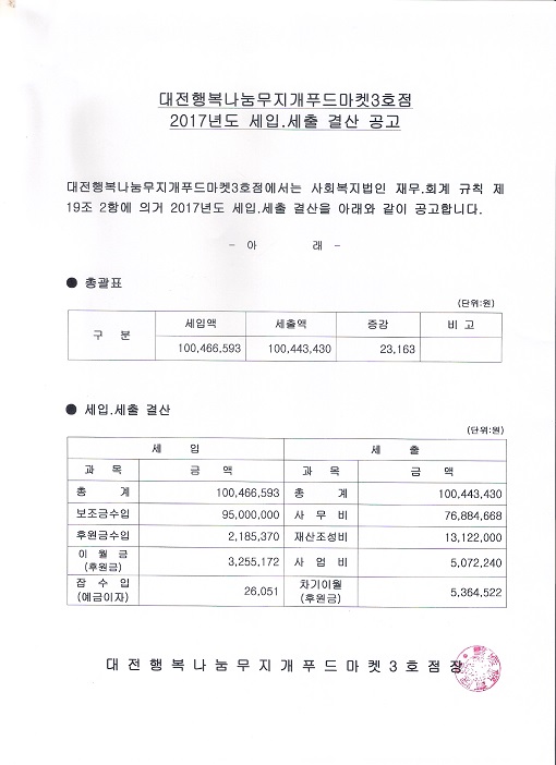 19-03-28 11:44 (공고)대전행복나눔무지개푸드마켓3호점 2017년도 세입.세출 결산 페이지 정보 작성자 성우보육원 댓글 0건 조회 5,581회 본문 (공고)대전행복나눔무지개푸드마켓3호점 2017년도 세입.세출 결산 목록 댓글목록 댓글목록 등록된 댓글이 없습니다.