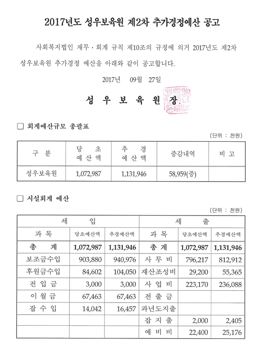 19-03-28 11:40 (공고)2017년도 제2차 추가경정 예산 페이지 정보 작성자 성우보육원 댓글 0건 조회 5,715회 본문 2017년도 제2차 추가경정 예산 목록 댓글목록 댓글목록 등록된 댓글이 없습니다.
