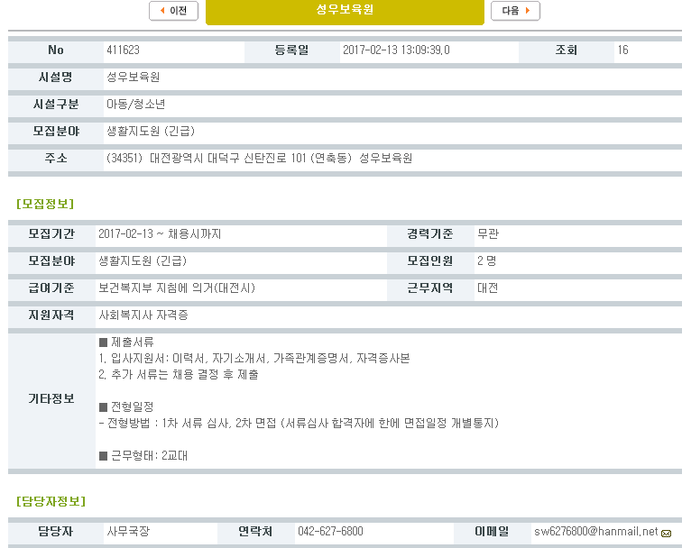 19-03-28 11:35 (공고)생활지도원 모집(긴급) 페이지 정보 작성자 성우보육원 댓글 0건 조회 5,815회 본문 생활지도원 모집(긴급) 목록 댓글목록 댓글목록 등록된 댓글이 없습니다.
