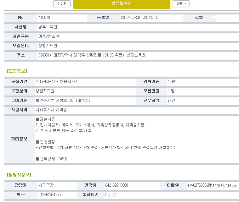 19-03-28 11:37 (채용공고)생활지도원 모집 페이지 정보 작성자 성우보육원 댓글 0건 조회 5,893회 본문 생활지도원 모집 목록 댓글목록 댓글목록 등록된 댓글이 없습니다.