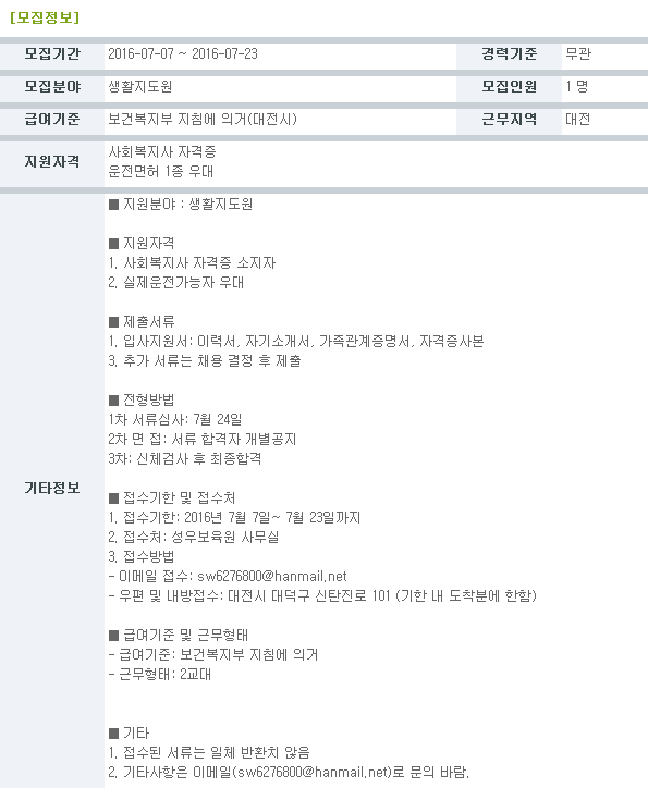 19-03-28 11:31 (채용공고)생활지도원 모집 페이지 정보 작성자 성우보육원 댓글 0건 조회 5,698회 본문 생활지도원 모집 목록 댓글목록 댓글목록 등록된 댓글이 없습니다.