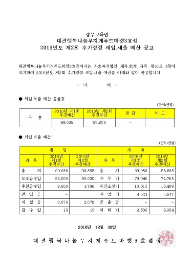 19-03-28 11:34 대전행복나눔무지개푸드마켓3호점 2016년 제2차 추가경정 세입.세출 예산 페이지 정보 작성자 성우보육원 댓글 0건 조회 6,078회 본문 대전행복나눔무지개푸드마켓3호점 2016년 제2차 추가경정 세입.세출 예산 목록 댓글목록 댓글목록 등록된 댓글이 없습니다.