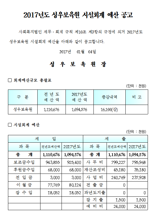 19-03-28 11:35 2017년 성우보육원 시설회계 예산 공고 페이지 정보 작성자 성우보육원 댓글 0건 조회 5,832회 본문 2017년 성우보육원 시설회계 예산 공고 목록 댓글목록 댓글목록 등록된 댓글이 없습니다.