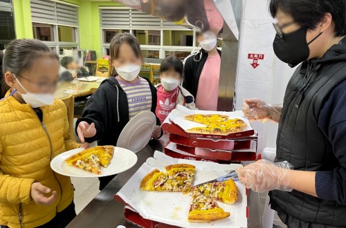 2022.11.22 피자헛 한남점에서 맛있는 피자를 후원 해주셨습니다!아이들이 따뜻한 피자를 나누어…