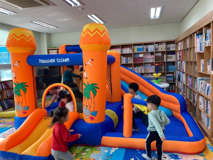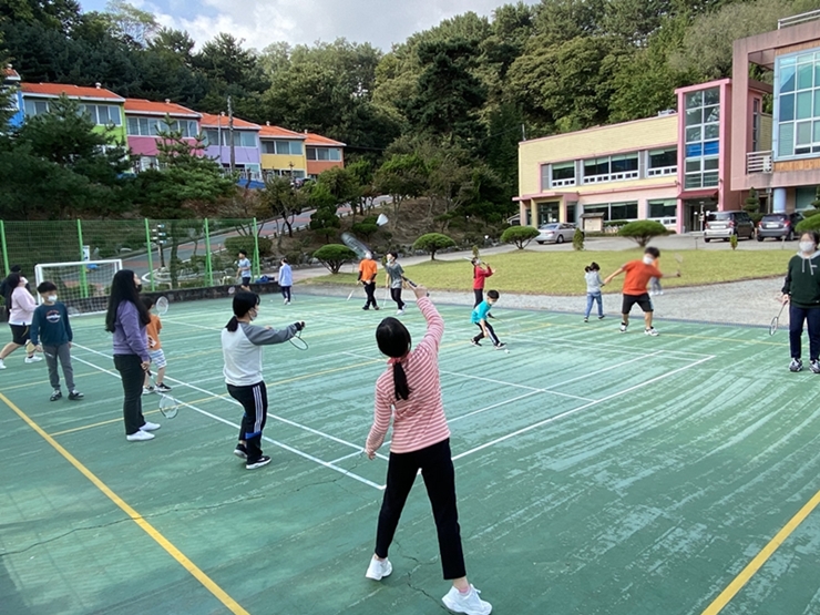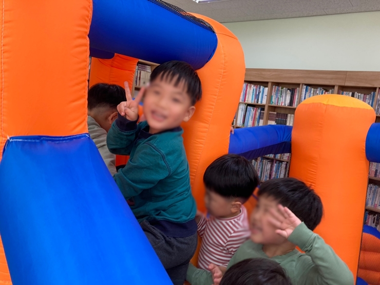 미취학 아이들은 실내에서 에어바운스, 초 중 고등학생 아이들은 실외 운동장에서 피구와 배드민턴 하였습니다!!