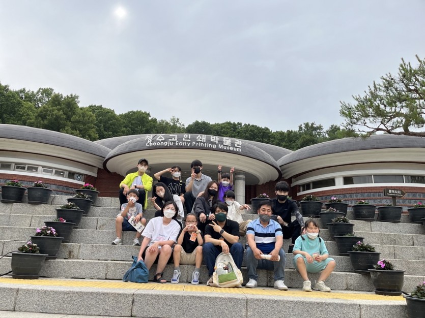 식사를 마친 뒤 봉사자분들과 함께 딱지치기 놀이도 하고 정원을 뛰어다니며 행복한 시간을 보내고 청주 고인쇄박물관으로 이동하였습니다!!!