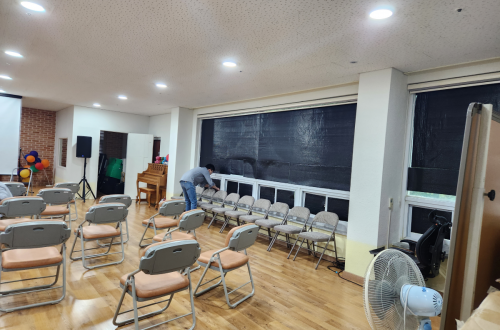 대덕대학교 봉사자 분들이 원에 직접 내방하셔서 아이들을 위해 직접 강당 창문에 암막 작업도 하시…