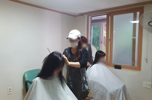 트윈스미용실에서 오셔서 미용봉사 해주셨습니다.