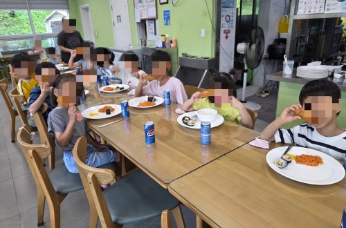 아이들을 위해 맛있는 라면과 바삭한 치킨, 시원한 콜라까지 후원해 주셔서점심으로 제공되었습니다~ …