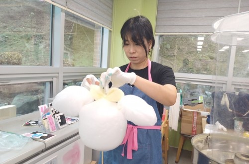 성우 아이들을 위해 예보에도 없던 비가 오는 궂은 날씨에도예쁜 캐릭터 모양의 솜사탕 직접…