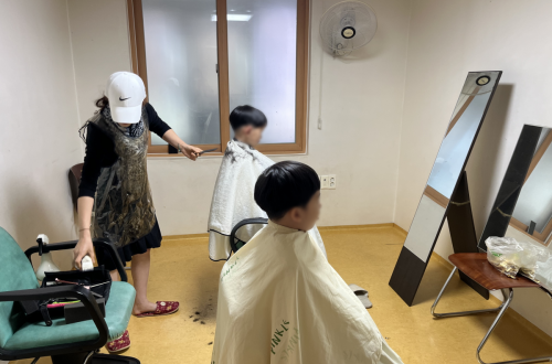 트윈스 미용실 마인자 원장님 내방하셔서 미용 봉사 진행해주셨습니다.아동들 원하는 스타일을…