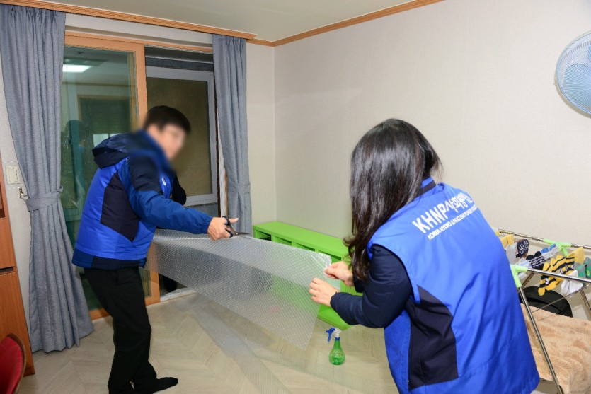 2019.12.20 한국수력원자력(주)중앙연구원에서 방한커텐교체작업과 단열에어캡 부착활동을 진행해주셨습니다!