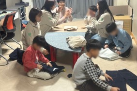 유니클로 & 초록우산 후원자님 내방하셔서 아동들에게 가구 및 의복 후원 및 의복 정리 교육,…