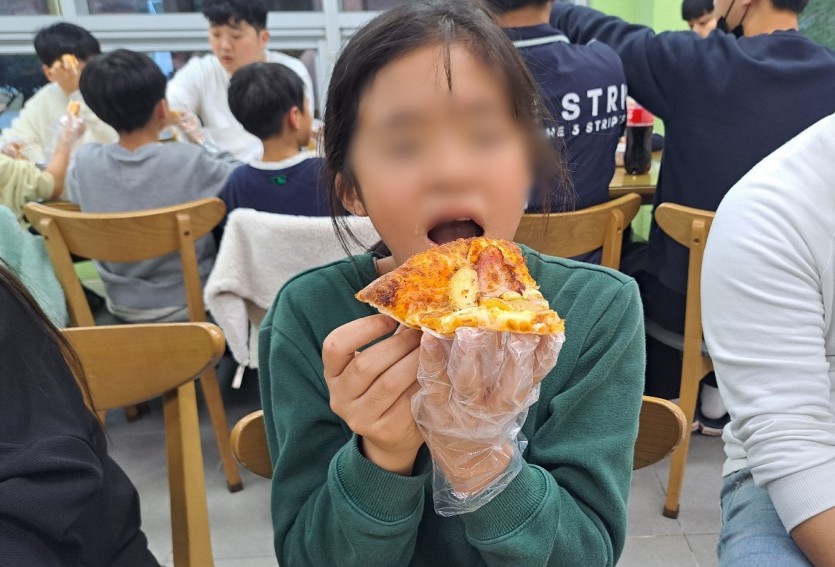 놀이 활동 마치고 준비해 주신 피자와 함께 저녁식사도