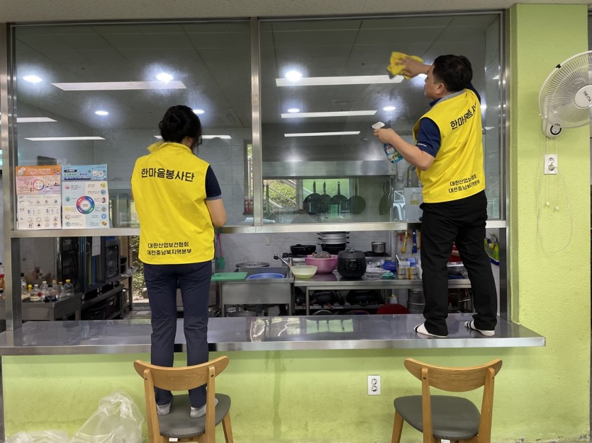 아동들이 청결하게 생활할 수 있도록 식당 청소와 강당 청소