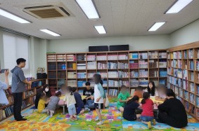 유성숙 사서님과 반갑게 인사 나누고, 아동들은 어떤 책을 들고 오셨는지 궁금해하는 눈빛…