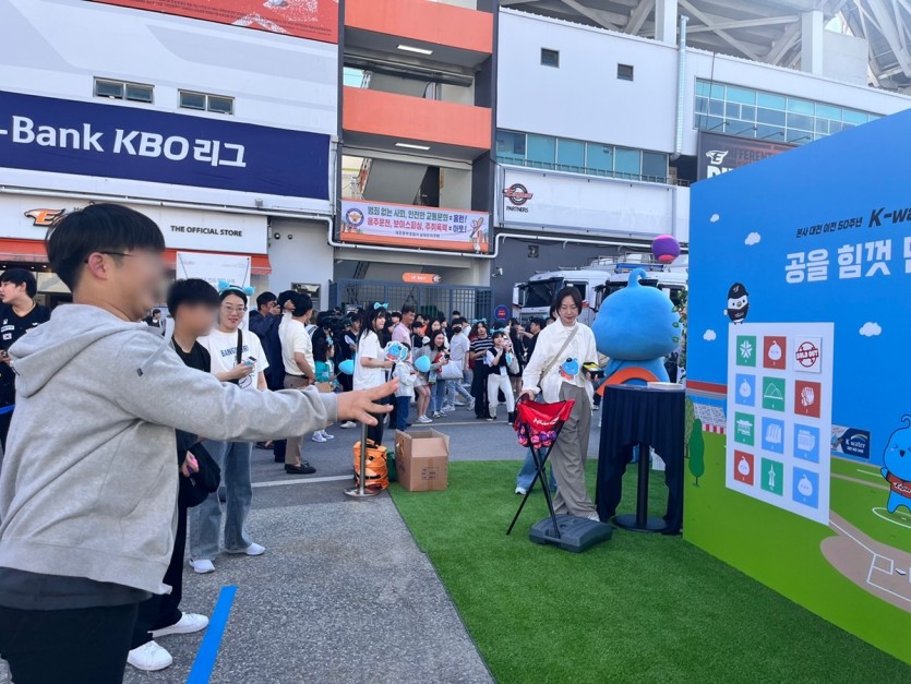 아동들을 위해 야구장에 도착하여 공 던지기 체험하고 상품도 주셨으며