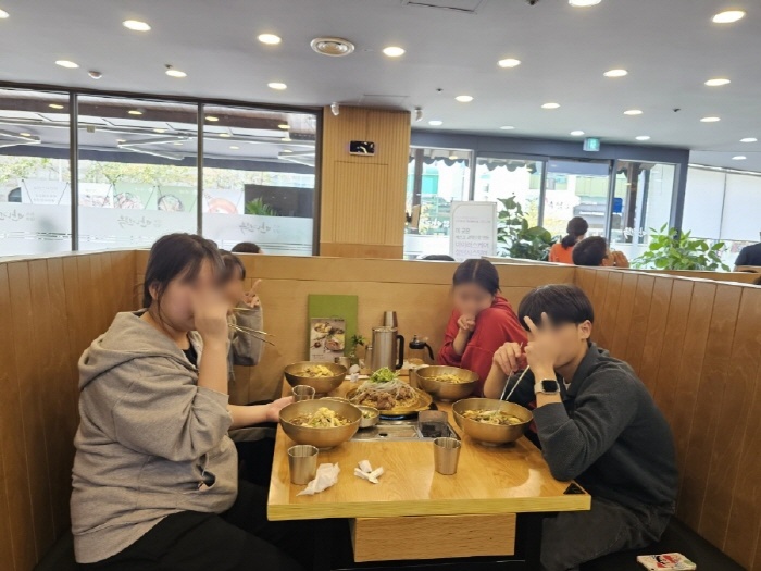 자전거 활동을 하고 맛있는 점심을 먹기 위해 만년옥이라는 냉면집으로 이동하였습니다.